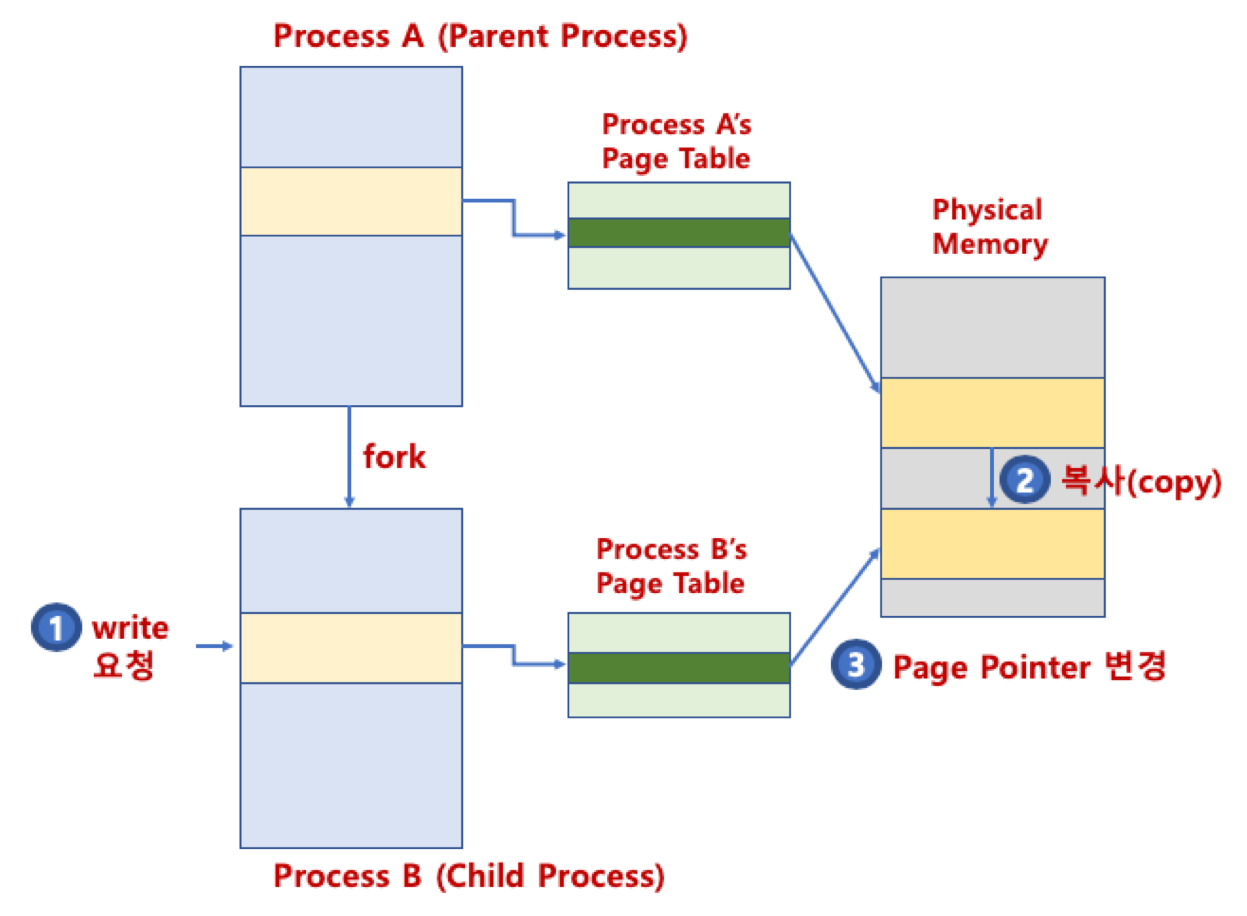 - 물리 주소에 데이터 수정 시도시, 물리 주소를 복사할 수 있음 (copy-on-write)