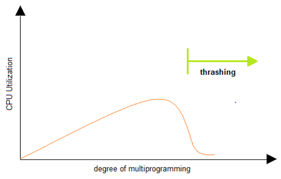 - 반복적으로 페이지 폴트가 발생해서, 과도하게 페이지 교체 작업이 일어나 실제로는 아무 작업도 하지 못함