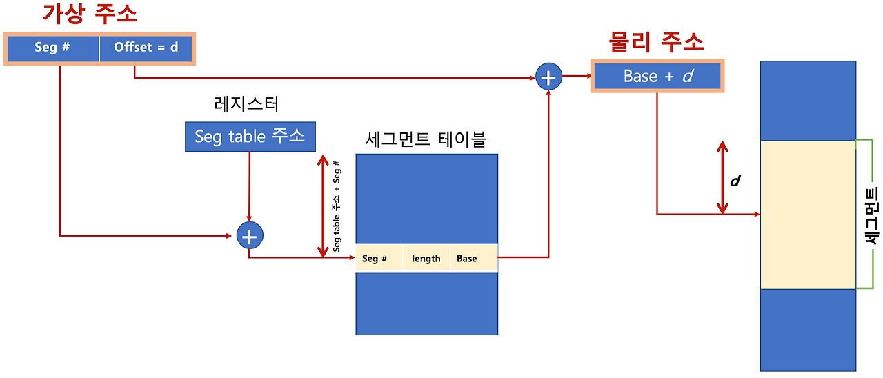 - 가상 메모리를 서로 크기가 다른 논리적 단위인 세그먼트(Segment)로 분할
