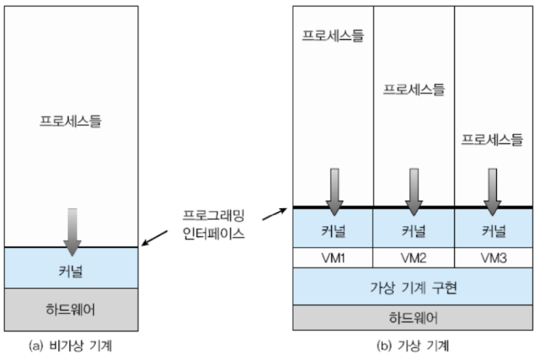 - 하이퍼 바이저 또는 버추얼 머신 모니터(VMM)가 Hardware에서 직접 구동