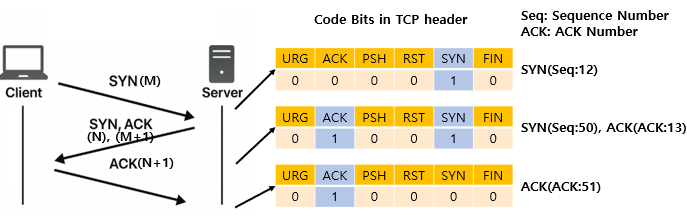 - Sequence Number: 일정 단위로 데이터를 분할해서 전송하며, 송신 측에서 수신 측에 데이터가 몇 번째 데이터인지 알려줌