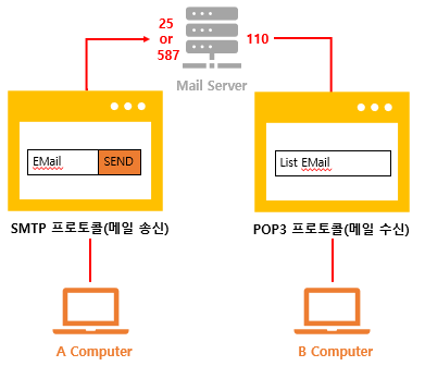 - SMTP(Simple Mail Transfer Protocol): 메일 송신
