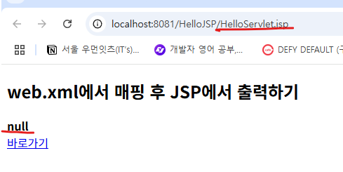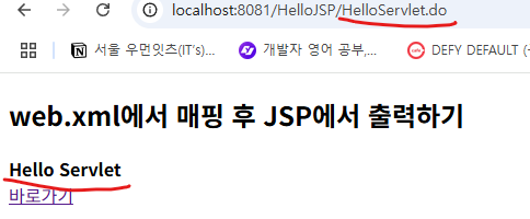 <h2>web.xml에서 매핑 후 JSP에서 출력하기</h2>