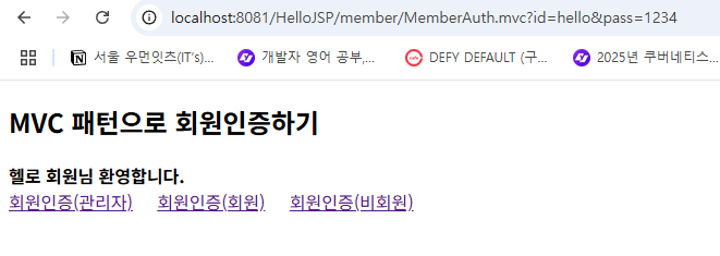 <!-- 1. 서블릿에서 회원인증 처리 후 결과 메시지 출력 -->
