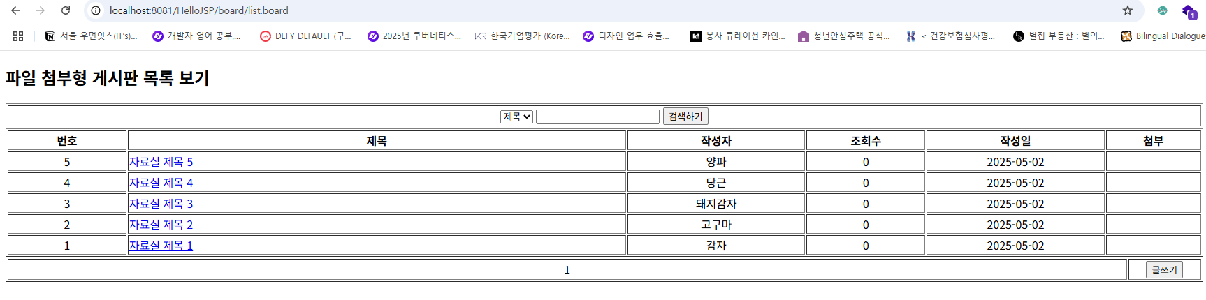 6) Default.jsp 실행 결과 - 검색 기능까지 잘 동작함