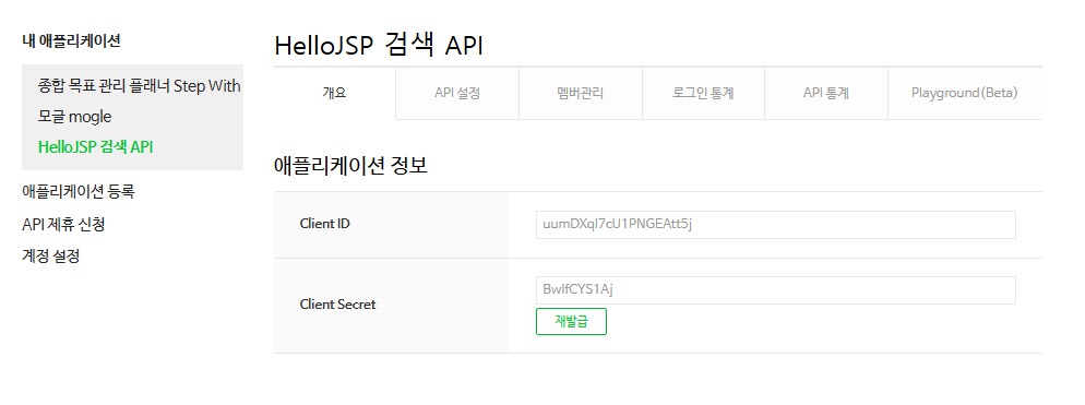 5) 오픈 API 이용 신청 완료(Client ID, Client Secret 부분을 기억해두어야 함)