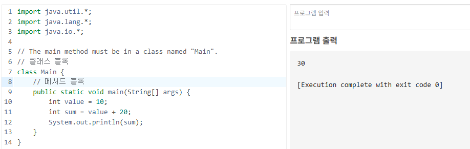 (자바 컴파일러 사이트에서 작성 및 실행: https://www.mycompiler.io/ko/new/java)