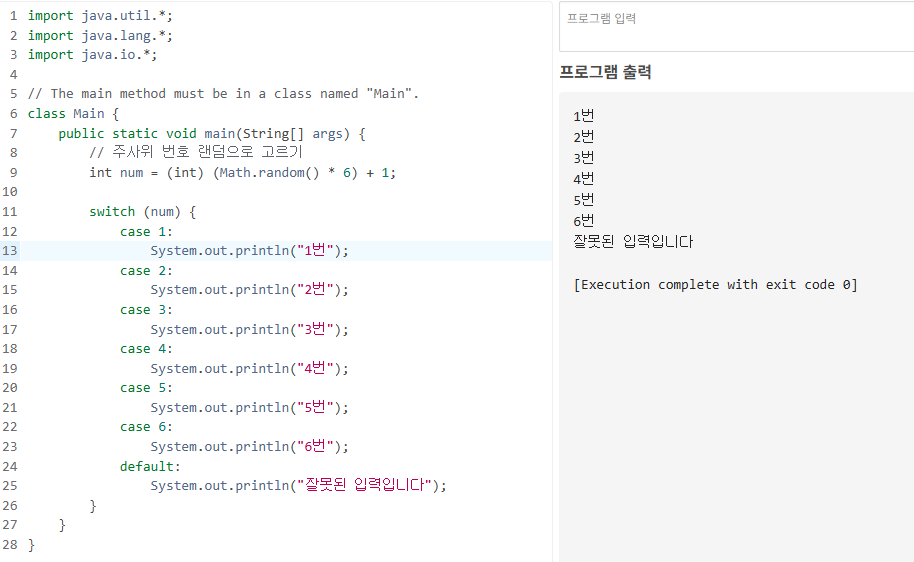 사용예시1: 자바 컴파일러 사이트(https://www.mycompiler.io/ko/new/java)