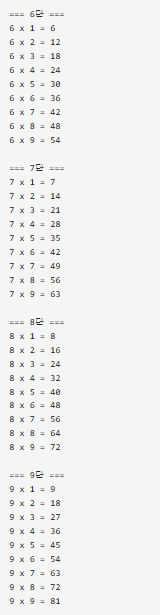 (2) 중첩 for문 예시: 구구단 2~9단 출력하기
