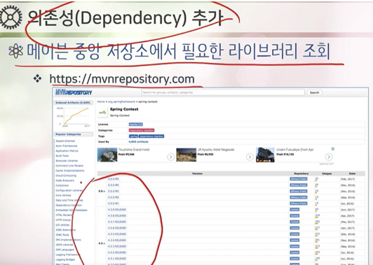 - 라이브러리 버전에 맞는 Dependency 태그를 mvn 센드릭 repository에서 제공해줌.