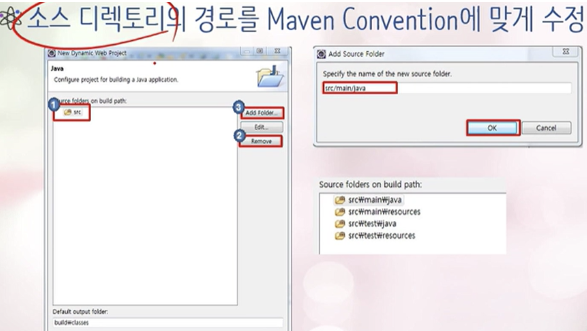 (2) Maven 기반 Spring Project 설정 방법- 2. 소스 디렉토리의 경로를 Maven Convention에 맞게 수정