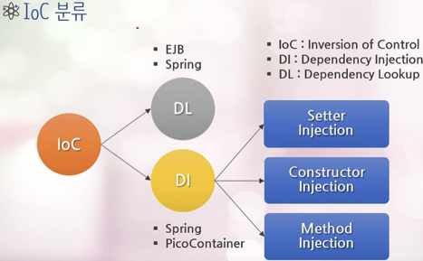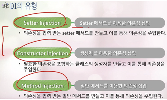→ Setter, 생성자, 메소드 이름으로 Injection을 진행할 수 있음