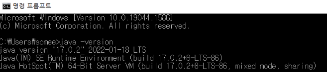 - 명령 프롬프트를 실행한 후, 커서에 “java -version” 입력