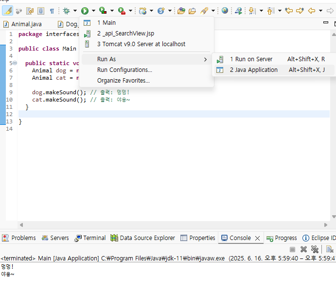 2025.06.13 - [자바(JAVA)/미니 프로젝트 & 기초 공부] - Java 기초 또 다시 공부하기 12일차 - 상속(추상 클래스와 추상 메서드)