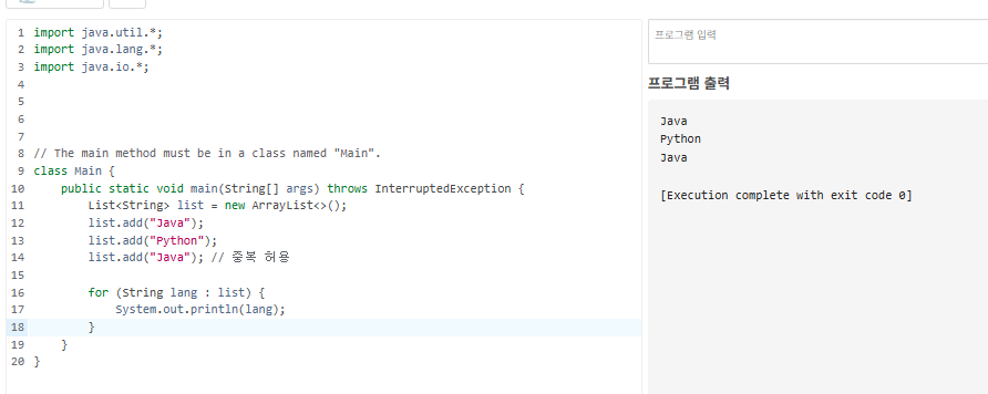 | ArrayList | 배열 기반, 빠른 조회, 동적 크기 조절 가능 |