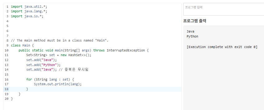 2) Set 컬렉션: 중복 없는 데이터 집합
