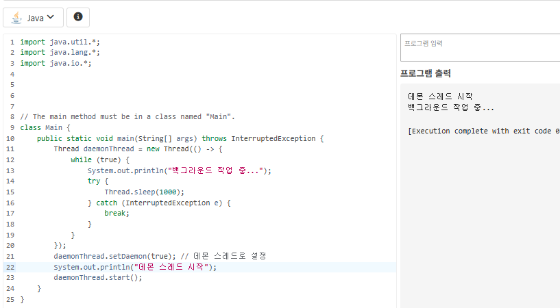 - 일반 스레드와 달리 JVM 종료 조건 만족(데몬 스레드만 남으면 JVM 종료)