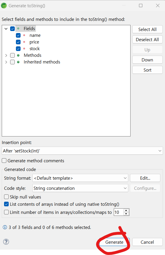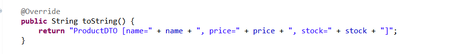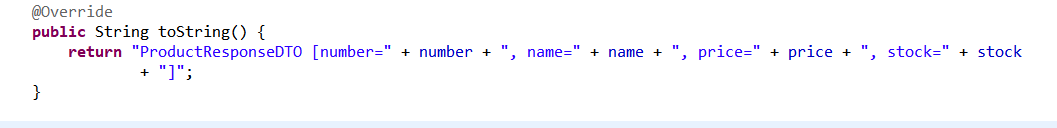 ProductDTO와 ProductResponseDTO에 필드의 값을 문자열로 조합해서 리턴하는 toString()을 추가하여