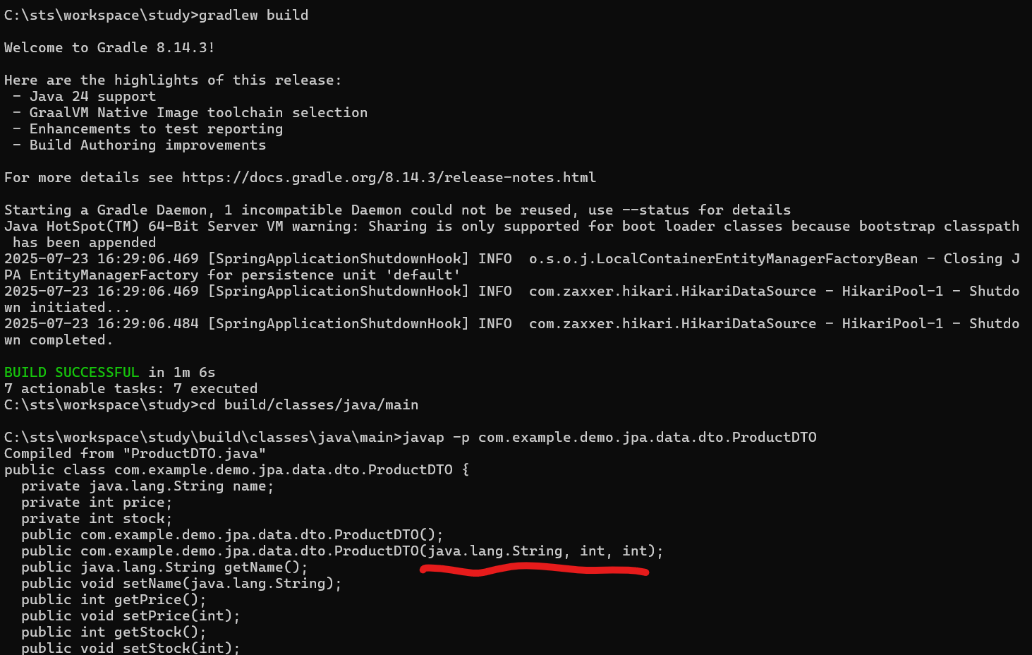 - cmd에서 프로젝트 루트로 이동한 후 javap -p 명령어로 -parameters 옵션이 적용되었는지 확인
