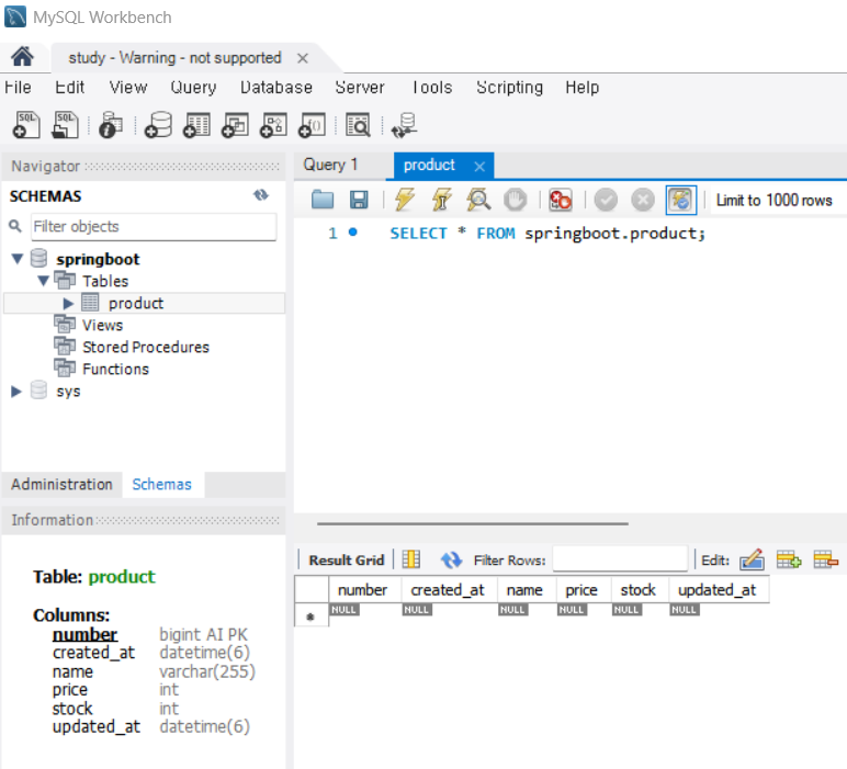 Hibernate: insert into product (created_at,name,price,stock,updated_at) values (?,?,?,?,?)
