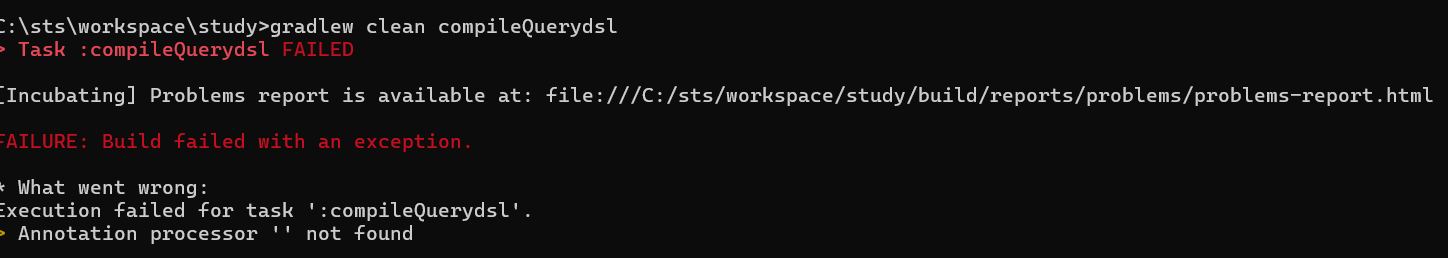 | QueryDSL APT 설정 | querydsl-apt를 annotationProcessorPaths에 명시 | annotationProcessor 'com.querydsl:querydsl-apt:...' |
