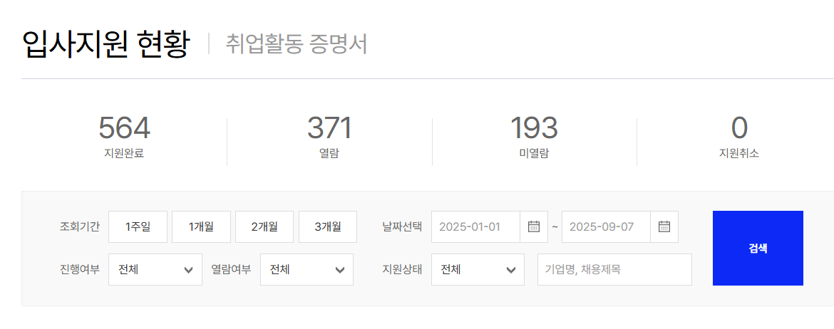 요즘 계속 컴공공부 글만 쓰고 있는데, 오늘은 특별하게 취준생활 기록을 해보려고 한다.1. 잡코리아 200곳 이상 지원, 약 20회 면접/코딩테스트지금까지 잡코리아에서만 약 200곳 넘게 지원했고,