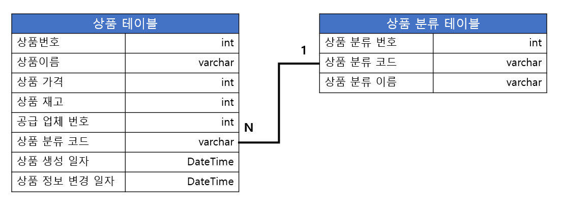 (1) 상품 분류 테이블에 매핑되는 엔티티 클래스 생성