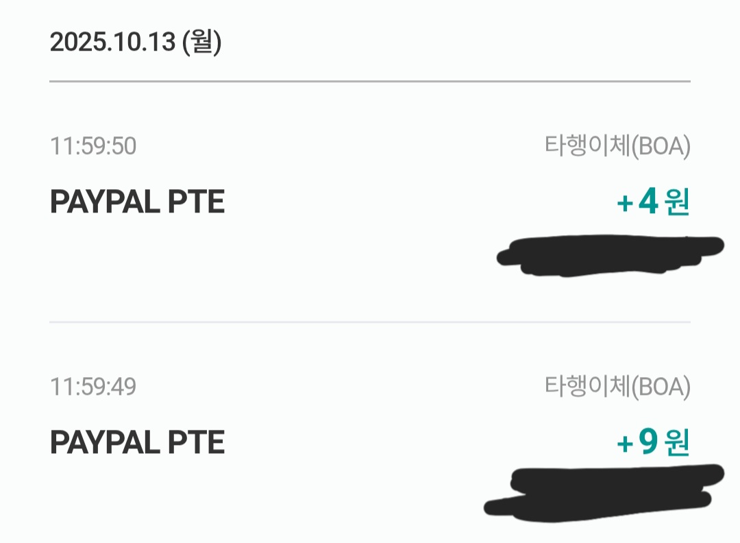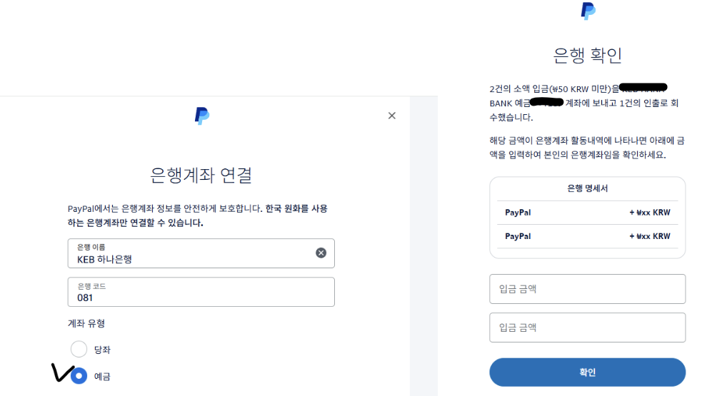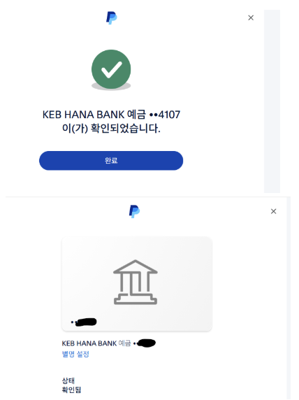 하은행 계좌는 “소액 입금 방식”으로 인증하므로, PayPal이 실제로 ₩50 미만 2건을 입금하면 국제 송금 절차 은행 반영 시간이 필요하므로 보통 1~2 영업일 후에 반영이 된다고 한다..