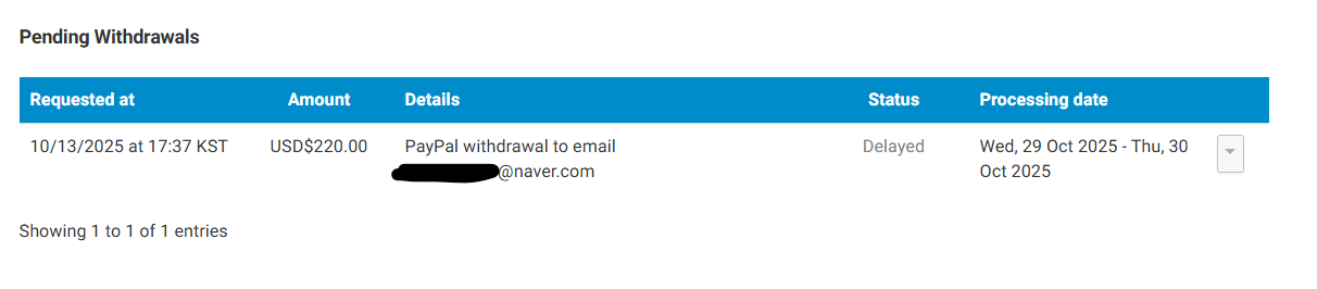 본격적인 첫 출금 시도.. 전 페이팔 계좌 확인(연휴 껴서 3일정도 기다림)