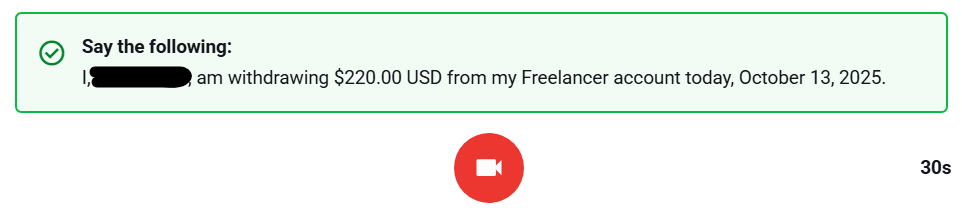 Freelancer.com은 최근 보안 강화를 위해 출금 요청 시 영상 인증(Video Verification) 절차를 도입했으며, 이는 본인이 실제로 출금을 요청한 당사자인지 확인하기 위한 보안 절차라고 한다...(뭐 이렇게 빡세ㅠ)