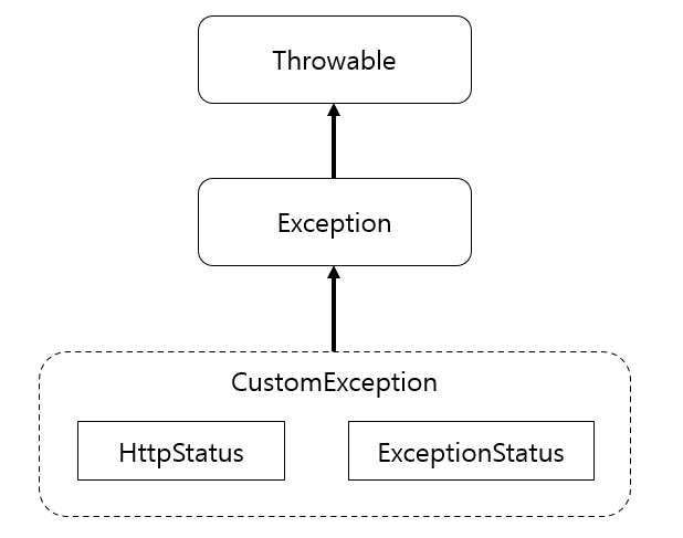 • 앞의 두 방식을 적절하게 섞은 것으로, 커스텀 예외를 만드는 과정에서 사용