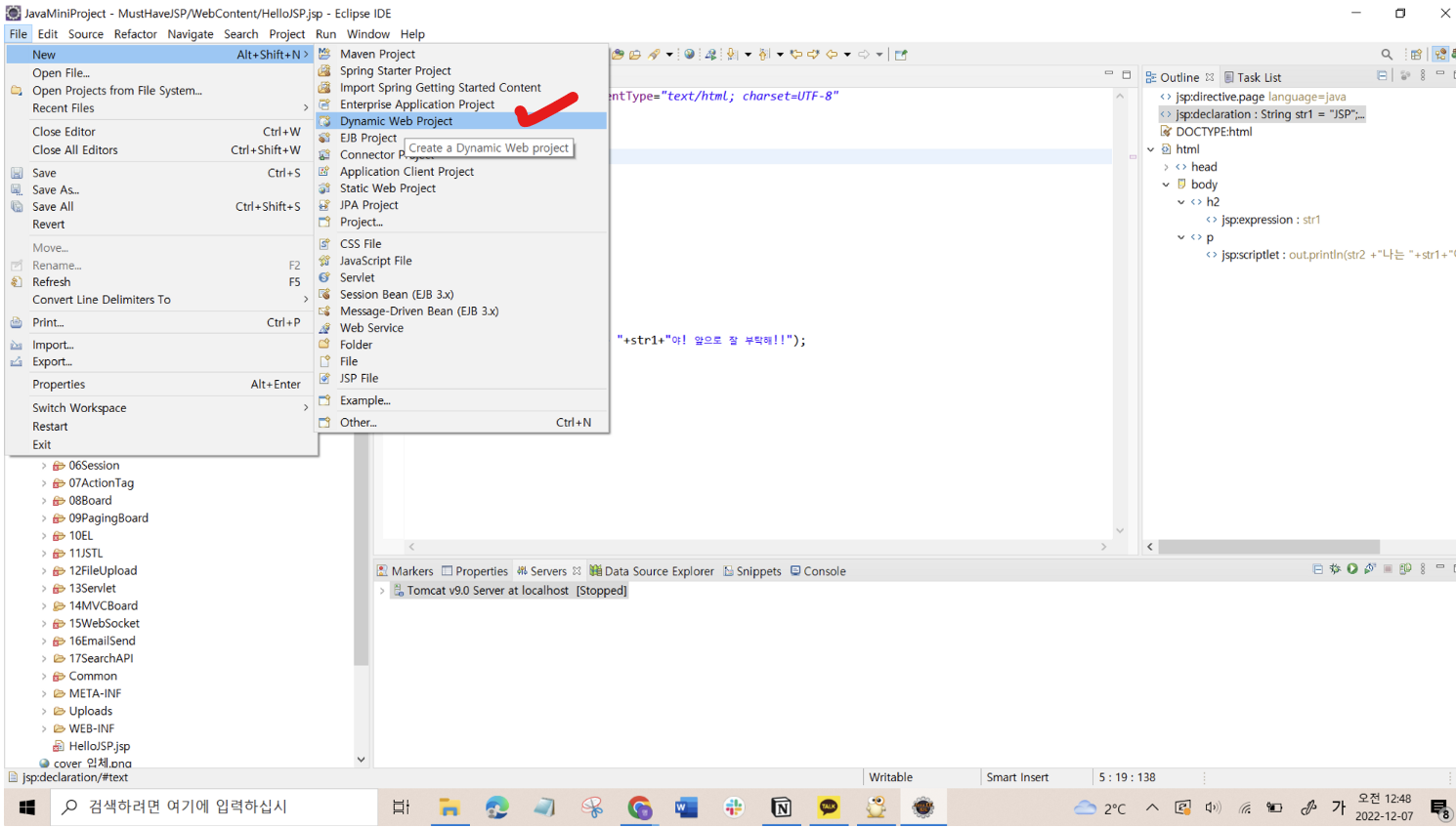 1) [File] → [New] → [Dynamic Web Project] 선택
