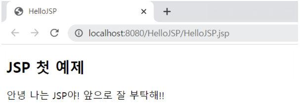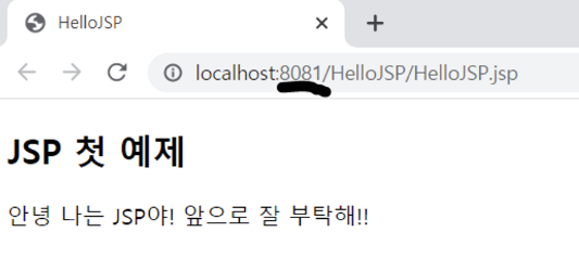 JSP 예제 실행 결과에서 웹 브라우저의 주소부분을 보면, localhost:8080으로 시작