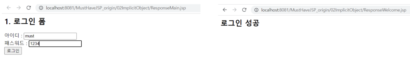 request 내장 객체를 통해 로그인 페이지(ResponseMain.jsp)로