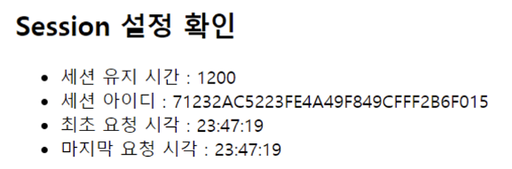 <h2>Session 설정 확인</h2>