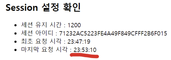 - 현재 세션 설정값 확인3 - 2.에서 구한 세션의 최초 요청 시각과 마지막 요청 시각을 출력