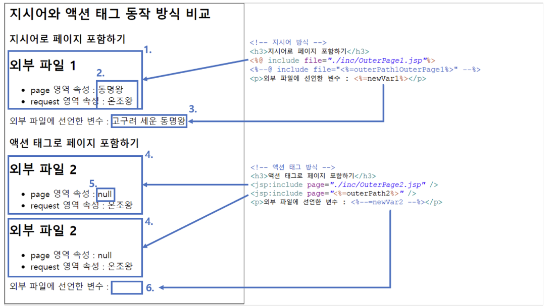 <h2>지시어와 액션 태그 동작 방식 비교</h2>