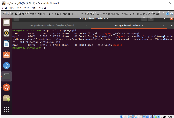위의 그룹 및 유저 생성을 mysql 디렉토리에서 해버려서 그런 건가 해서,