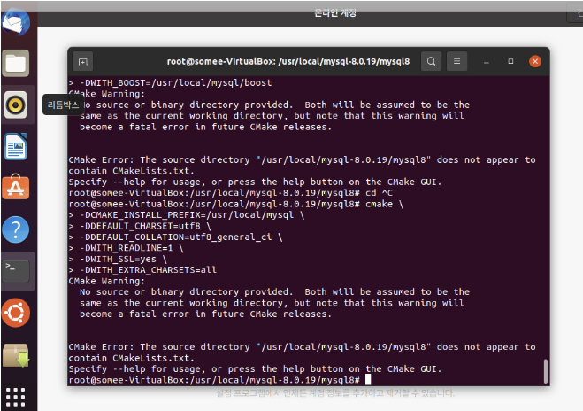 - 문제 해결! 인 줄 알았으나 /usr/local/mysql-8.0.19/mysql8# cmake \ 부분에서 같은오류 또 발생