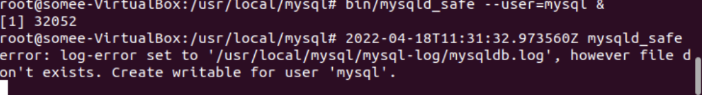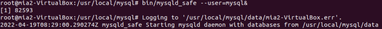/usr/local/mysql# bin/mysqld_safe --user=mysql &