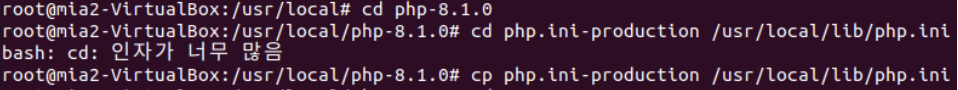잘 설치되어 있지 않아, rm -rf /usr/local/php-8.1.0/*을 진행하고 tar부터 configure까지 다시 진행했다