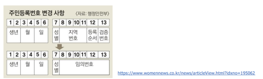 - 2020년부터 변경된 주민번호 생성 조건 적용: 생년, 월, 일, 성별, 임의의 번호로 생성(임의 번호 범위는 1~999999사이의 값으로 설정, 생년은 2020년도 이후로 입력한다고 가정)