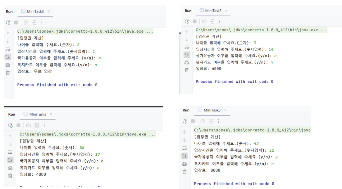 // 자바 기초 미니과제 3: 놀이동산 입장권 계산 프로그램
