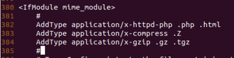 **1. 모듈 설치확인-**아파치 설정 파일인 httpd.conf 파일을 vi 편집기로 열어, PHP 모듈이 설치됐는지 확인한다. (165번째 line에 있음)