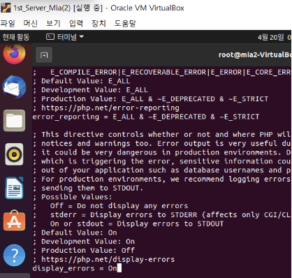 - 이번에는 https://nicgoon.tistory.com/258를 참고해서 php.ini display_errors를 Off에서 On으로 바꿨다.