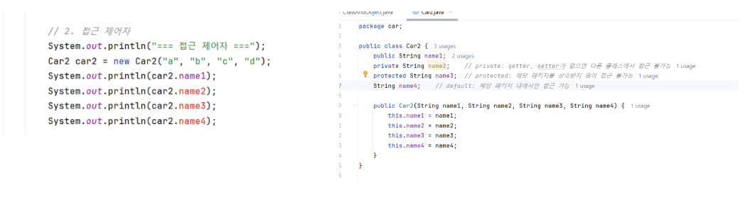 • 클래스의 변수나 메서드의 접근에 제한을 두는 키워드