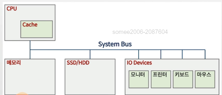 -> CPU 안에 레지스터(register), 캐쉬(cache memory)