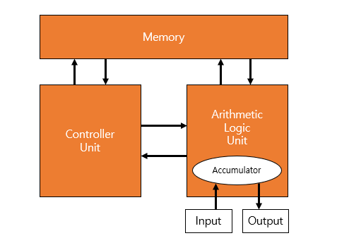 - CPU, 메모리, 프로그램으로 구성되어 있음: 메모리(Memory)에 프로그램과 데이터가 저장됨