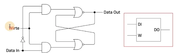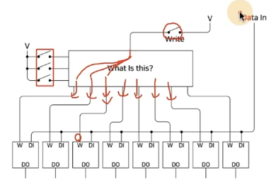 - Write가 1, V 스위치로 특정 출력 선정, Data In의 값이 특정 latch에 쓰여짐