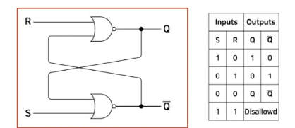 -> 단, S와 R이 1인 상태는 피하도록 설계(Q값과 Q바의 값이 둘 다 0이 되기 때문)